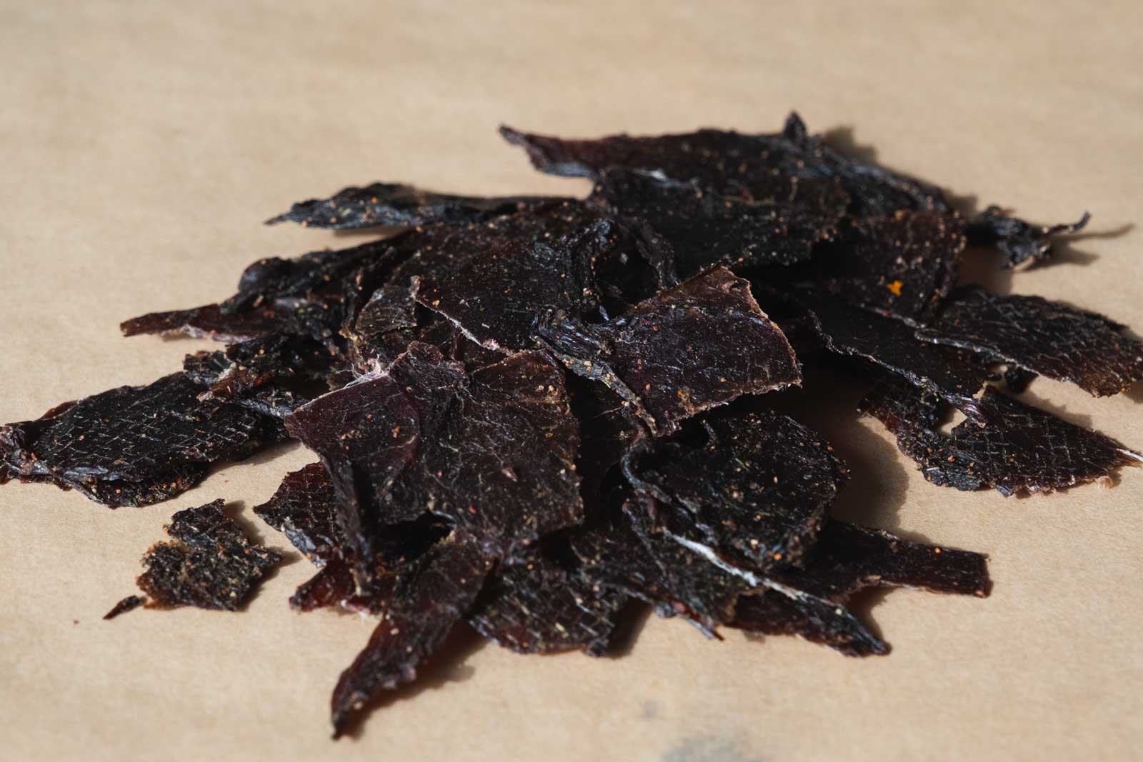 Valmistus: Viipaloi liha noin puolen sentin paksuisiksi siivuiksi – helpommin onnistuu kun liha on hieman jäässä. Poikki syyn leikkaaminen tekee jerkystä mureampaa. Sekoita marinadi ja pyörittele lihasiivut huolellisesti siinä. Siirrä tiiviiseen rasiaan tai minigrip-pussiin ja marinoi jääkaapissa 24 tuntia. Levitä siivut kuivurin ritilälle niin, että ilma pääsee kiertämään kaikkialta. Kuivaa 55°C:ssa yön yli. Jerky on valmis kun se on kovapintainen mutta ei vielä napsahda poikki taivutettaessa. Pakkaa minigrip-pusseihin ja säilytä pakastimessa.