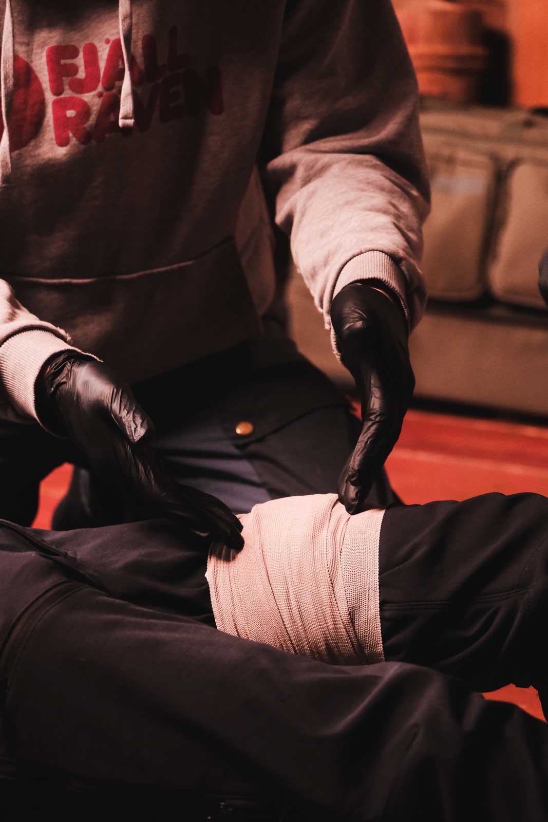 Ensiaputaitoja harjoiteltiin erilaisissa tilanteissa, joissa toiminta pitää saada käyntiin ilman pitkää miettimistä. Tarkoitus ei ollut käydä läpi kaikkea mahdollista, vaan varmistaa, että perusasiat ovat niin selkärangassa, että niitä pystyy soveltamaan myös kuormittuneena ja kylmissä olosuhteissa.